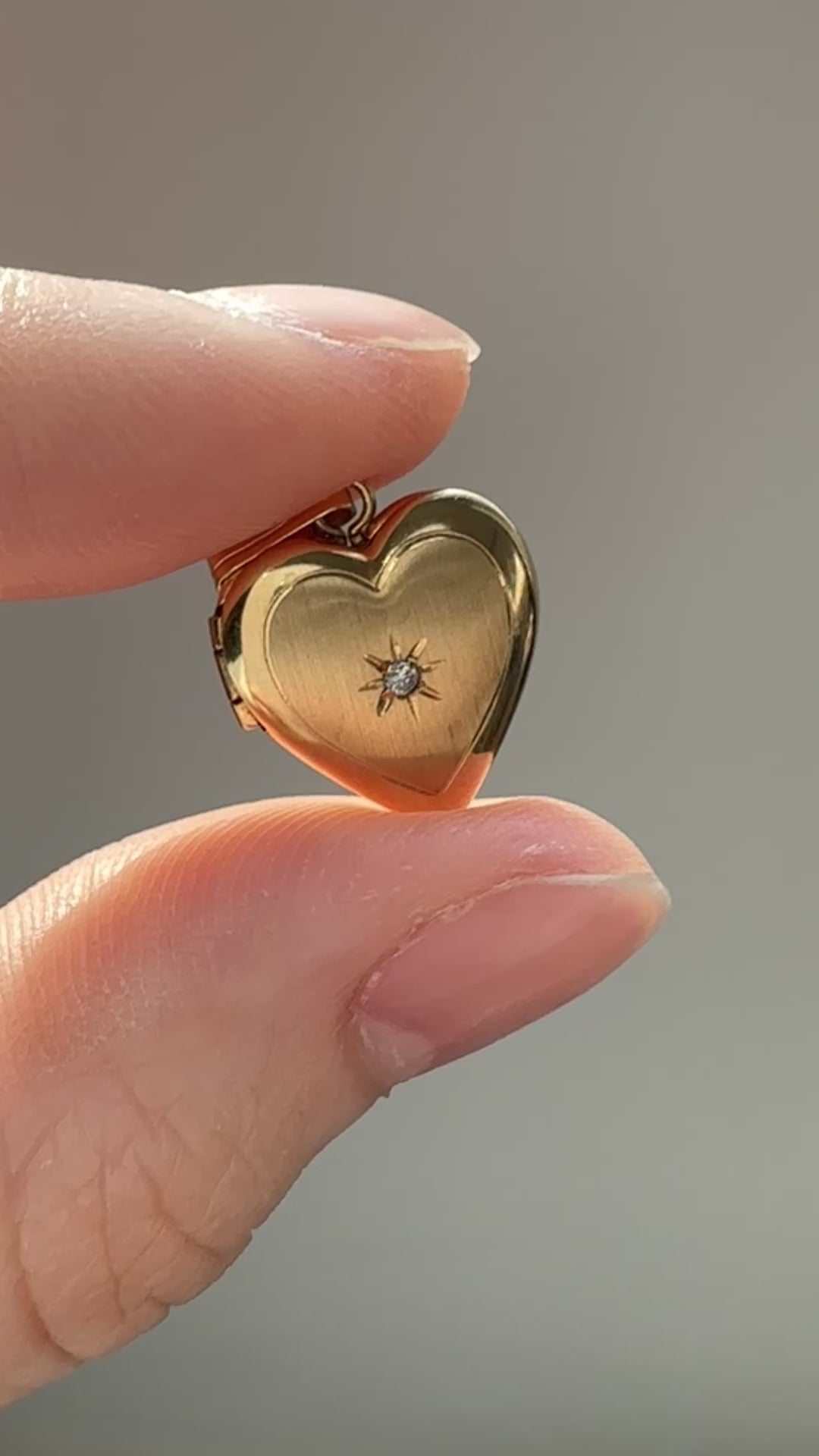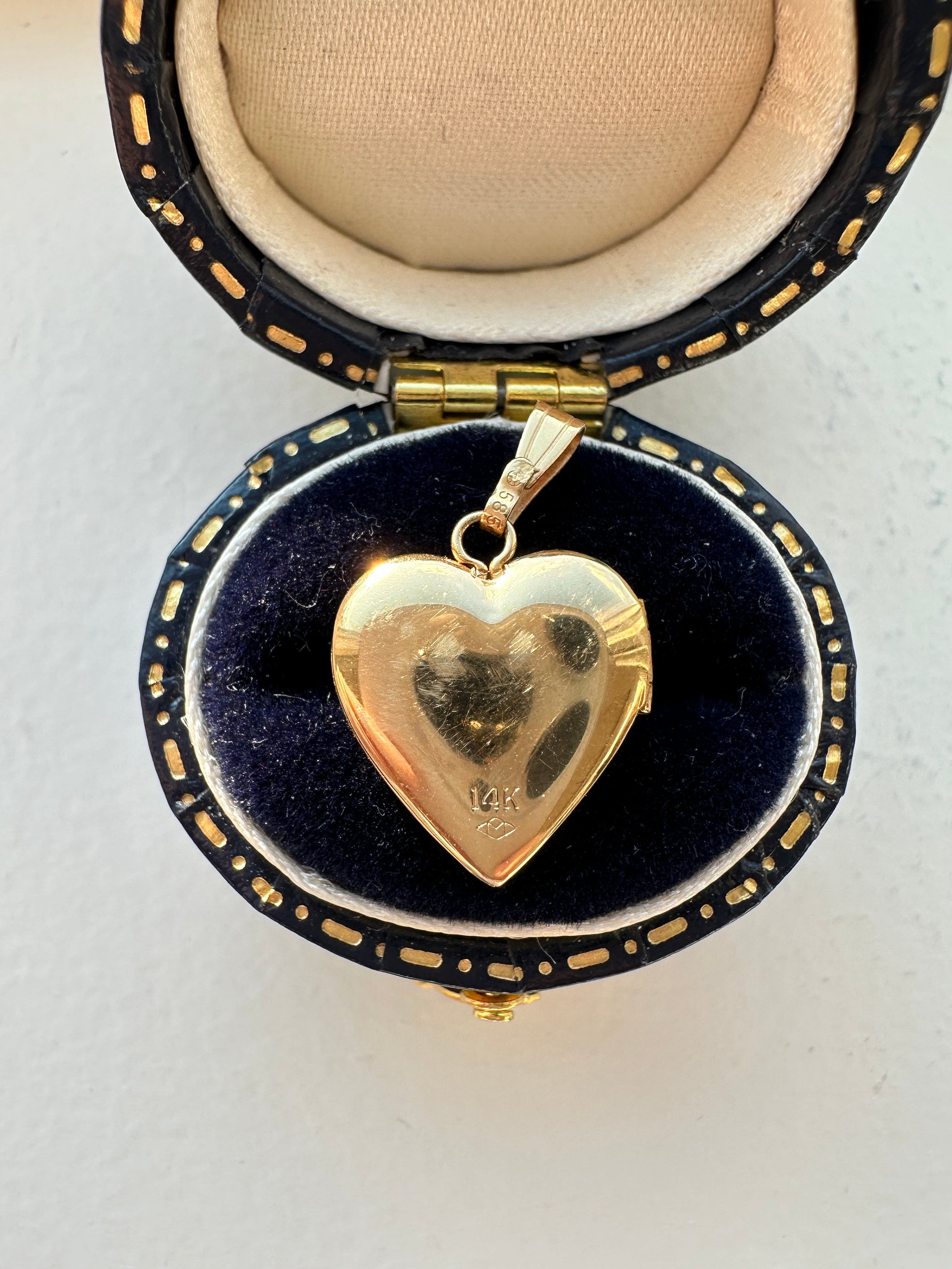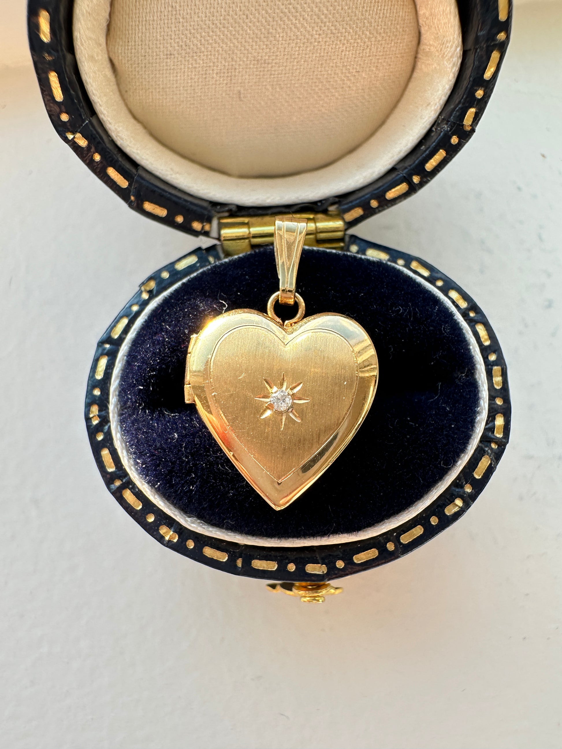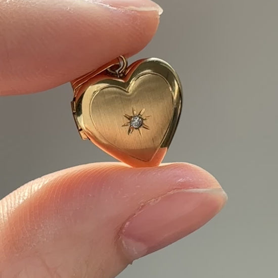 复古 14K 黄金钻石心形星形小盒吊坠