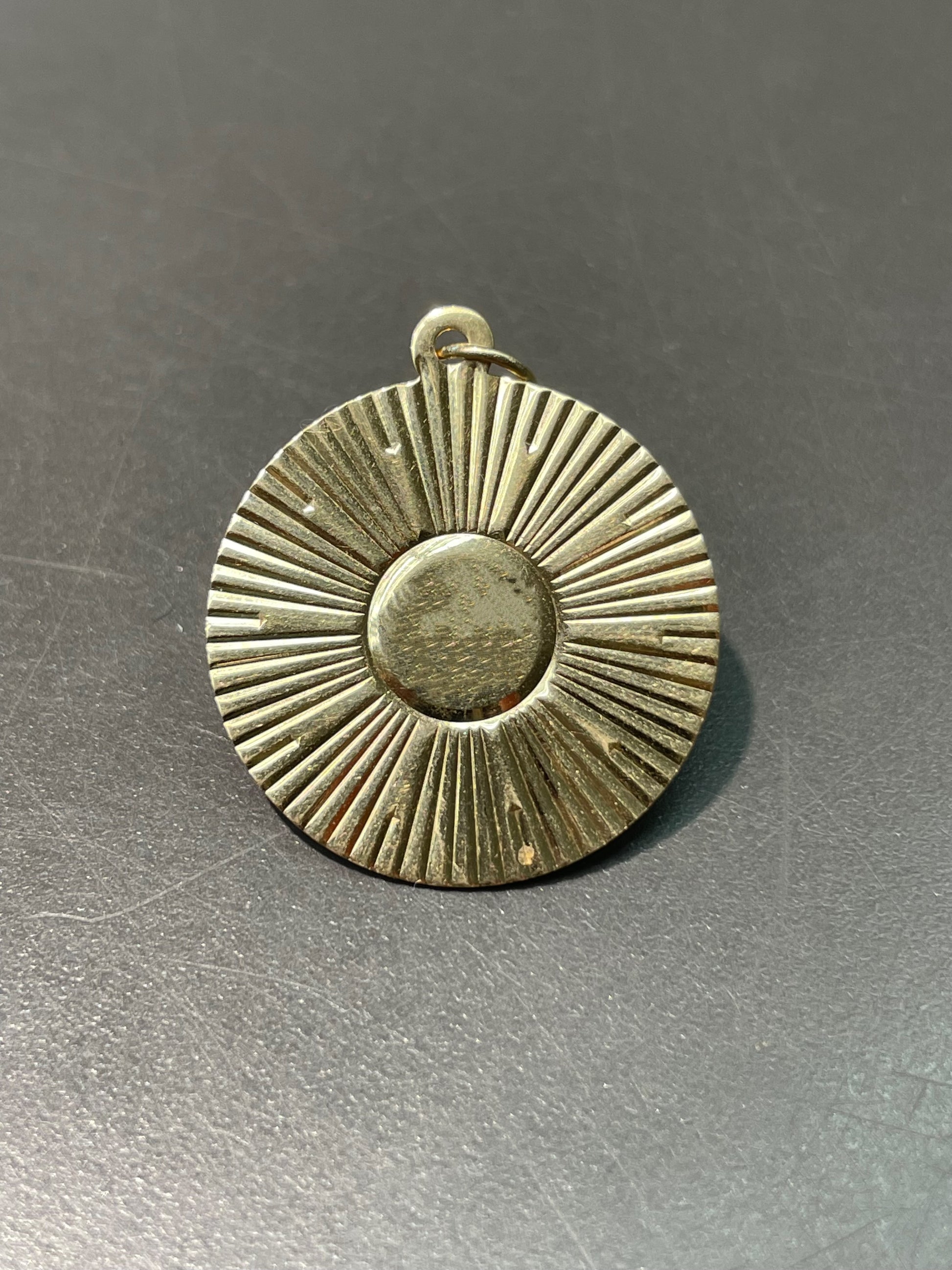 Vintage 14K Yellow Gold Engine Turned Circle Disk Pendant