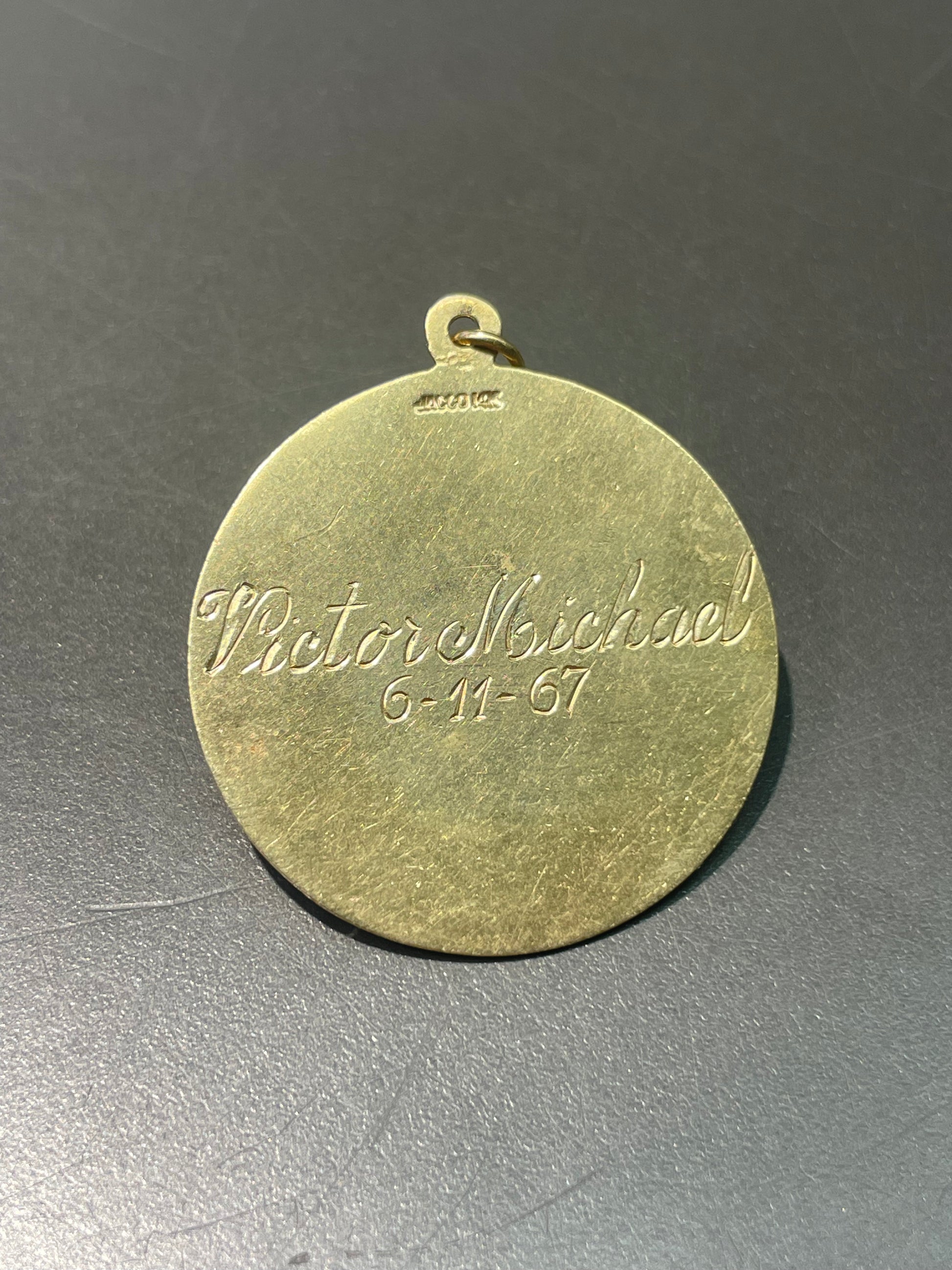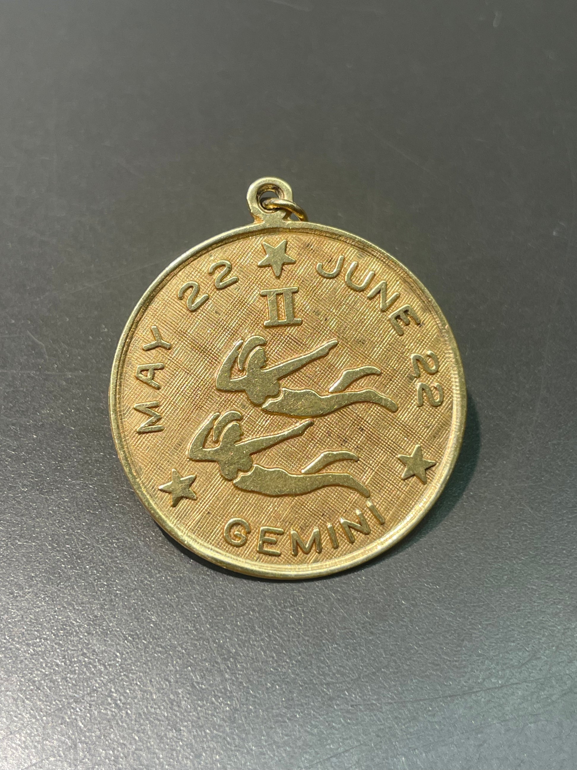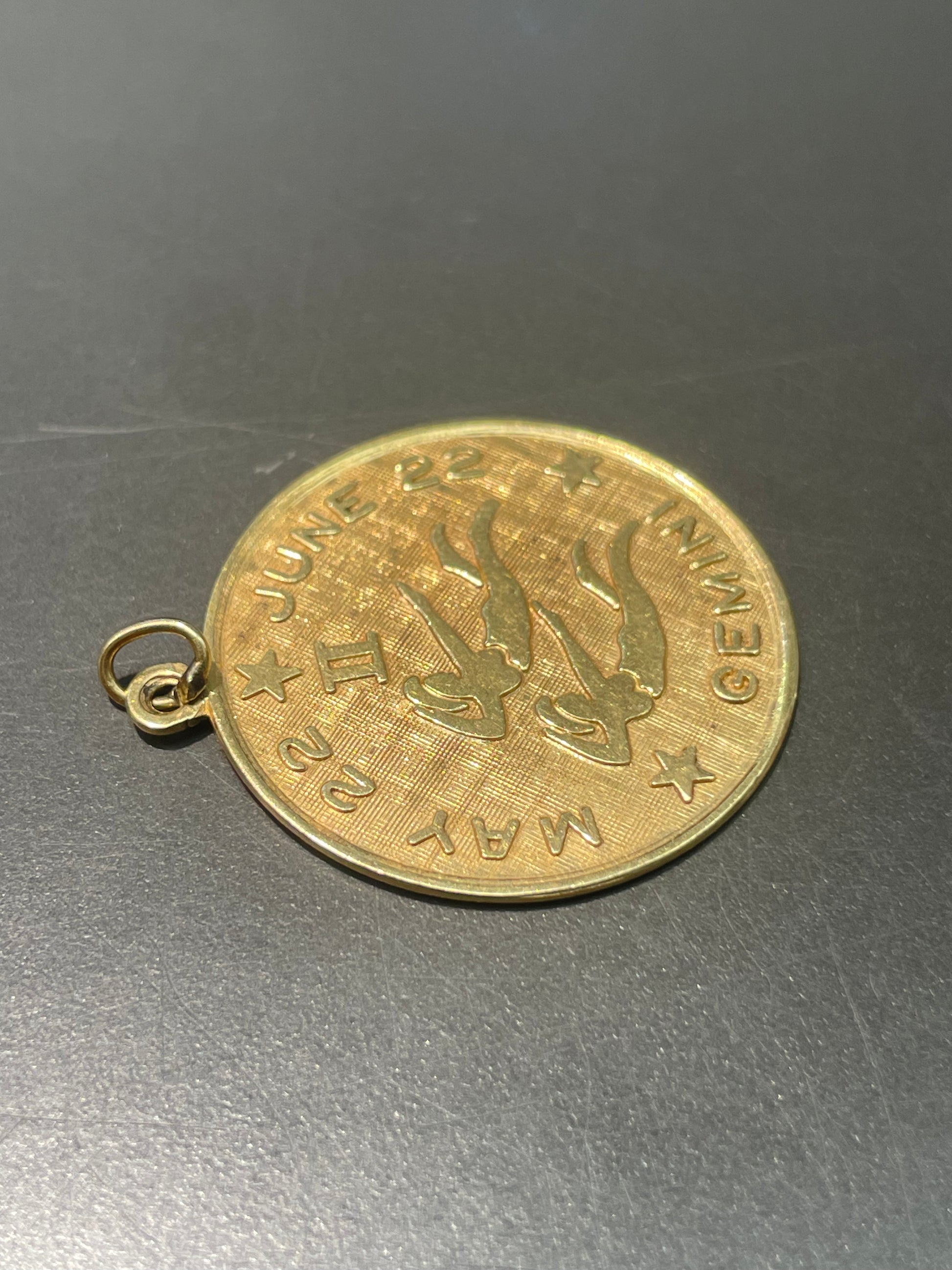 Vintage 14K Yellow Gold Large Gemini Round Horoscope Pendant