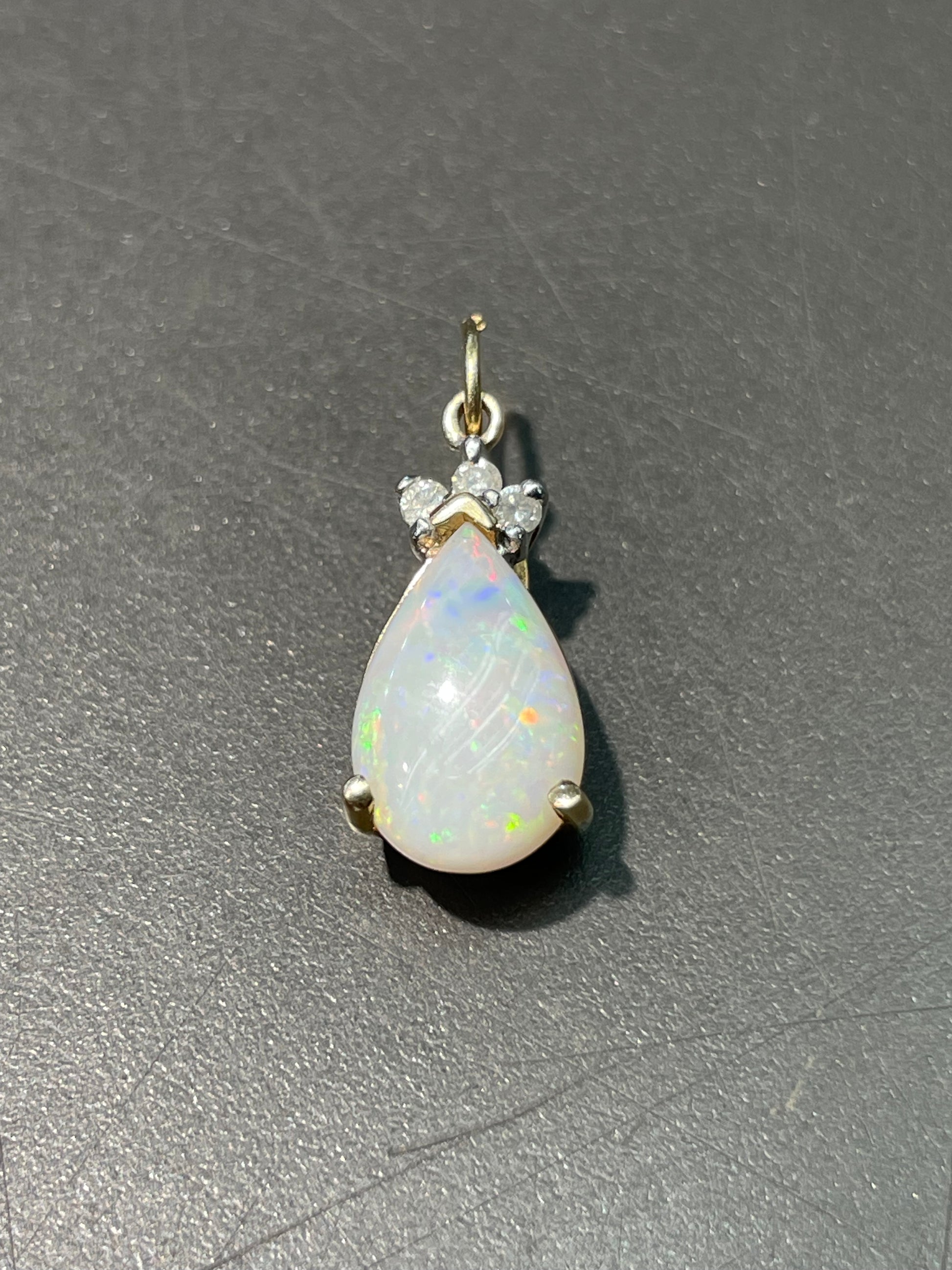 Vintage 14K Yellow Gold Opal Diamond Drop Charm Pendant MM