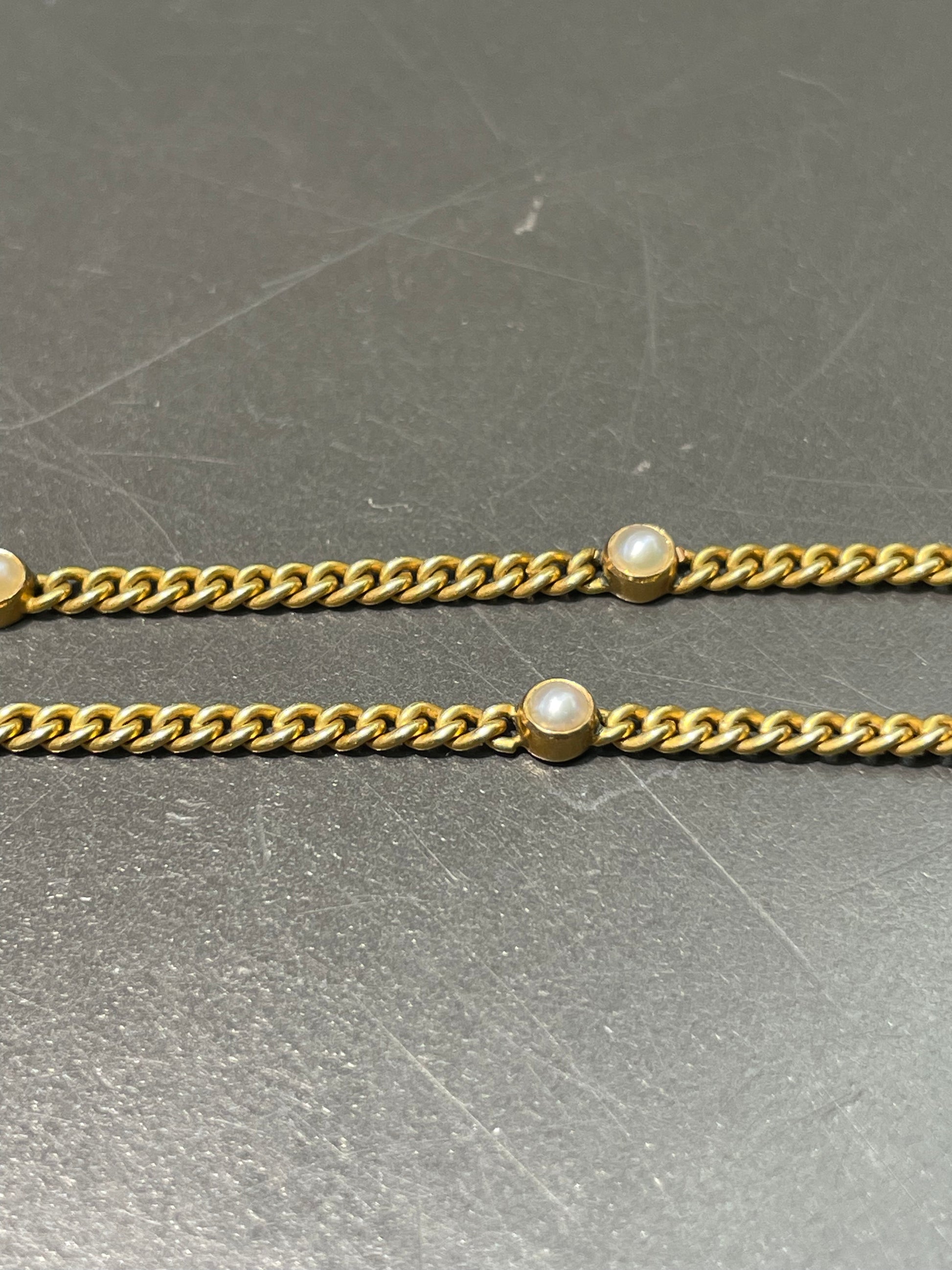 Vintage 14K Yellow Gold Pearl Station Curblink Bracelet