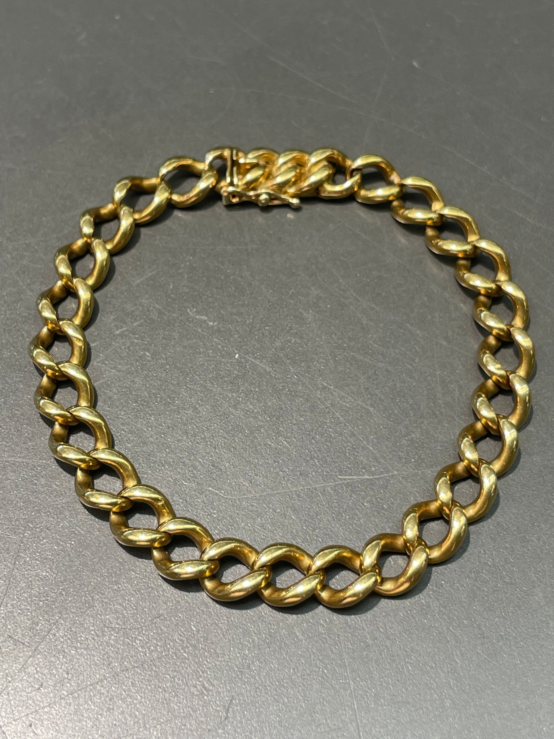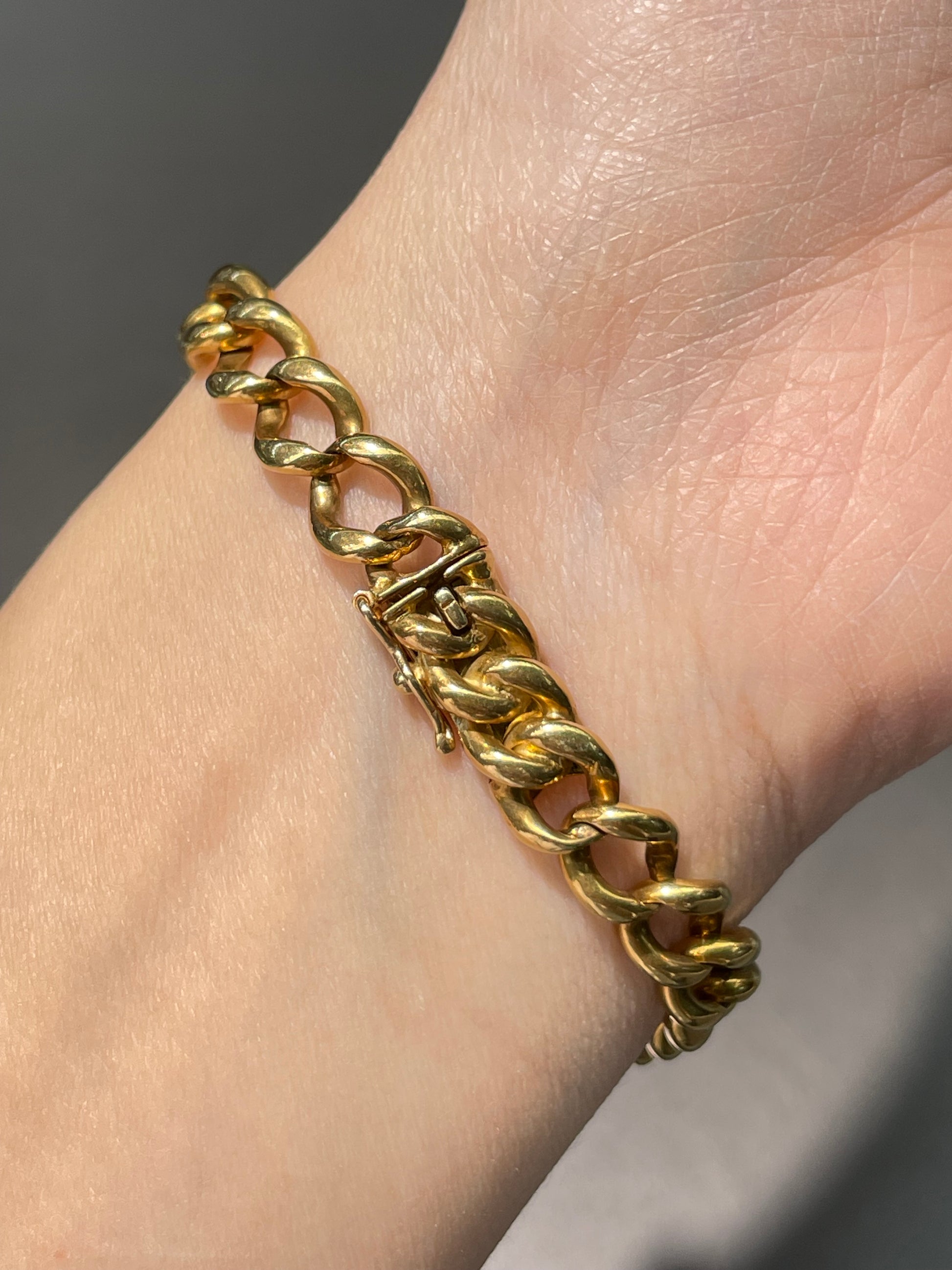 A substantial vintage bracelet with solid curb links crafted in buttery 14K yellow gold.
