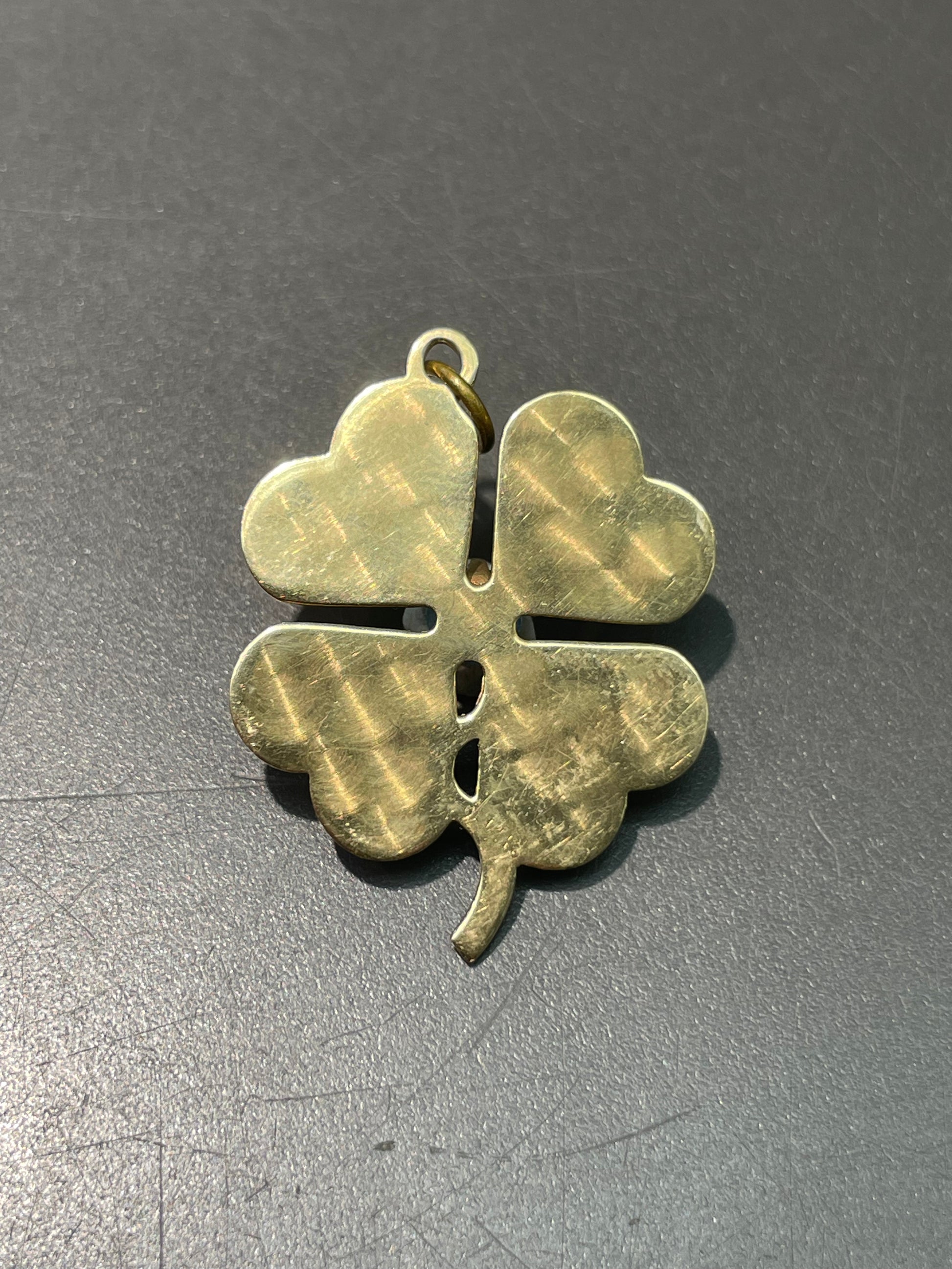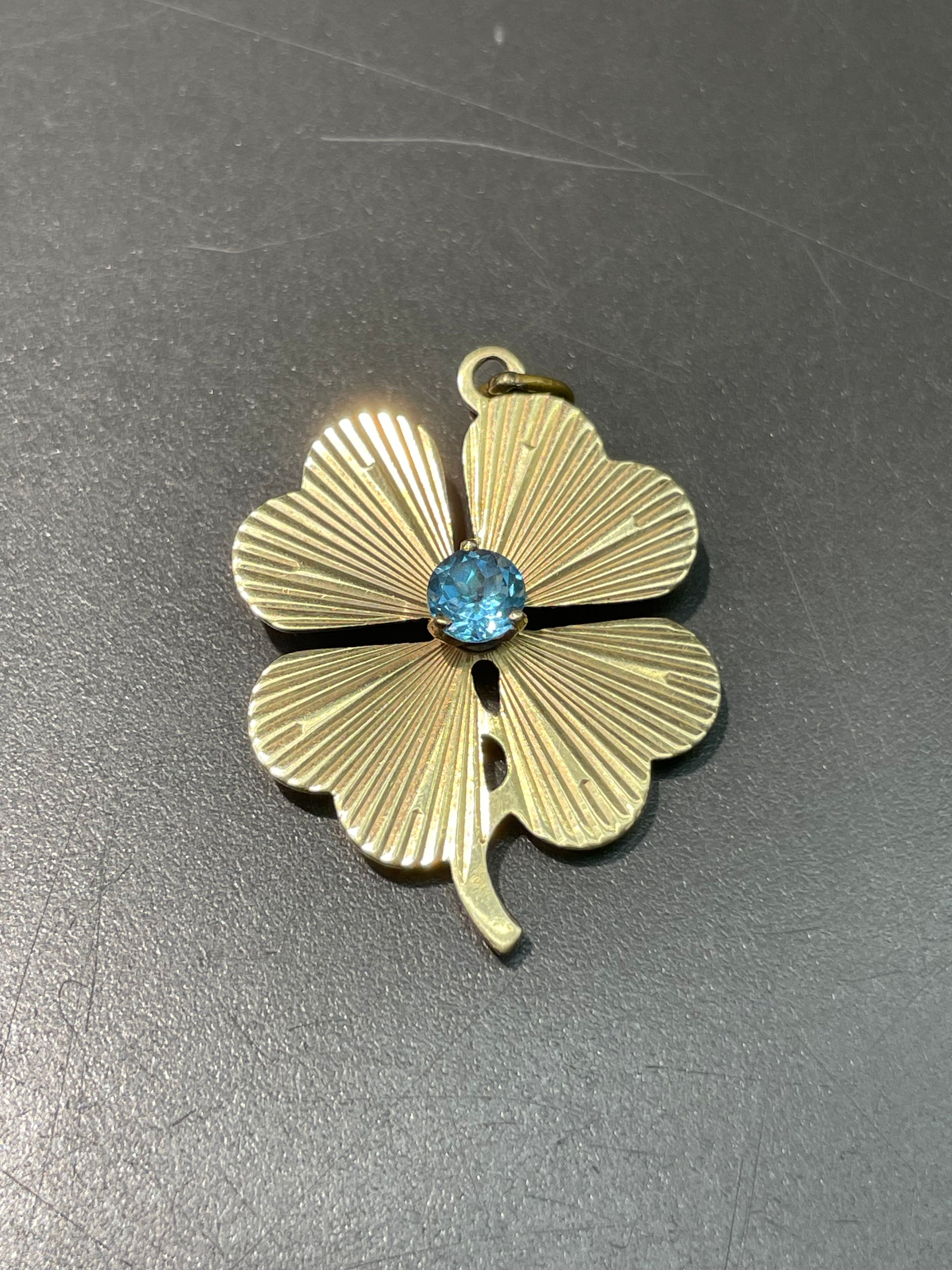 Vintage 14K Yellow Gold Topaz Clover Shamrock Engine Turned Charm Pendant