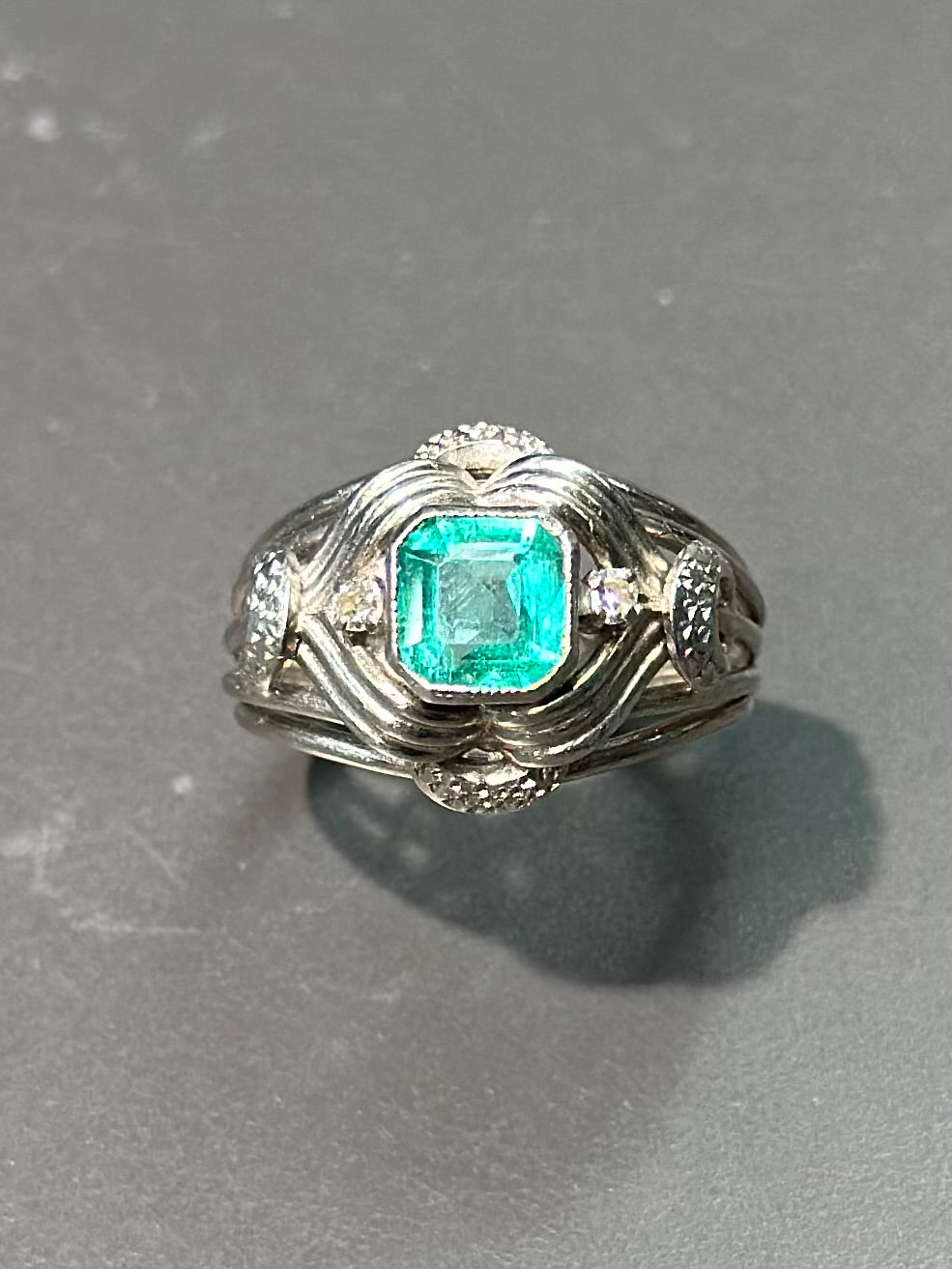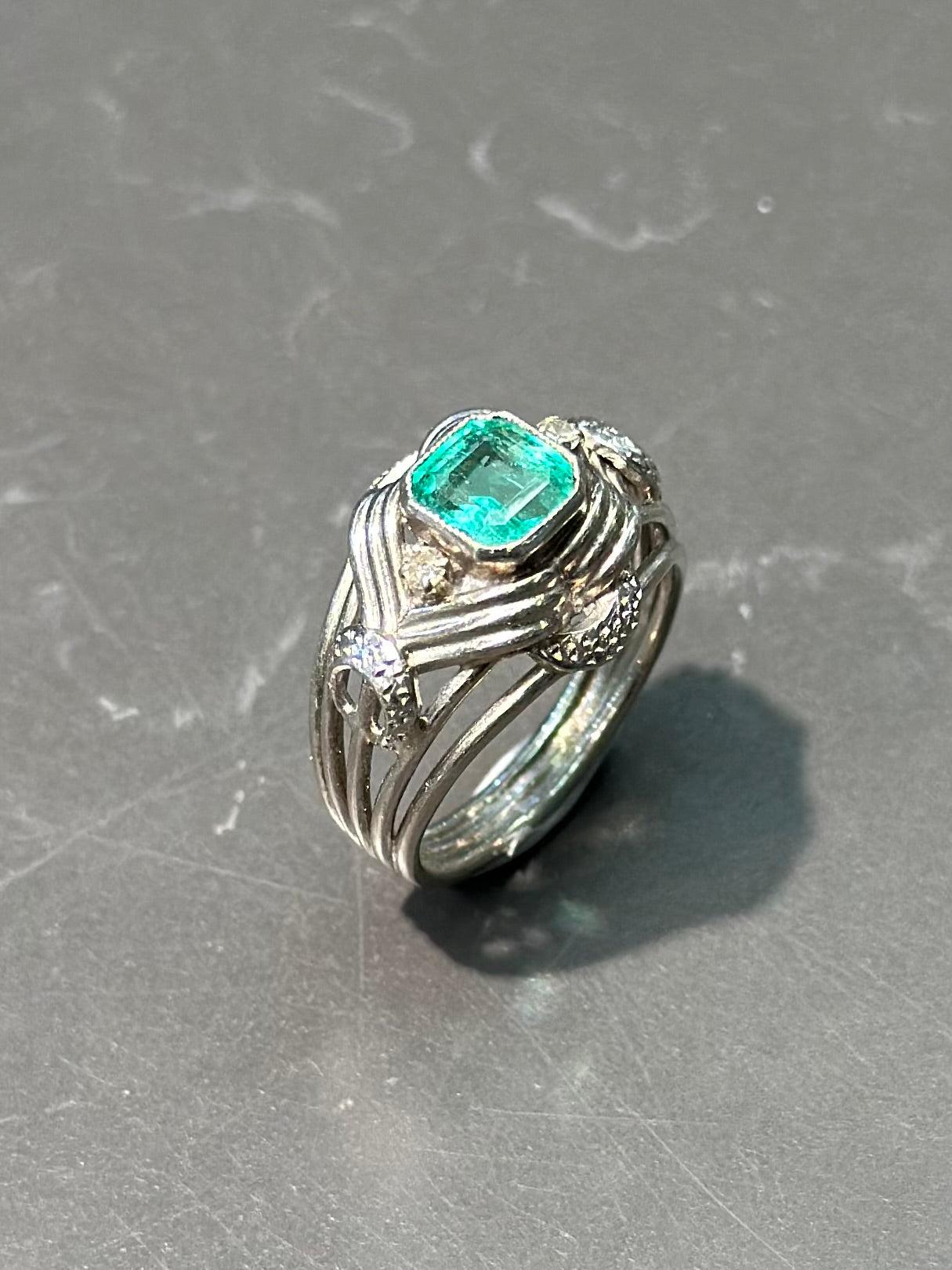 复古 18K 金哥伦比亚祖母绿钻石戒指