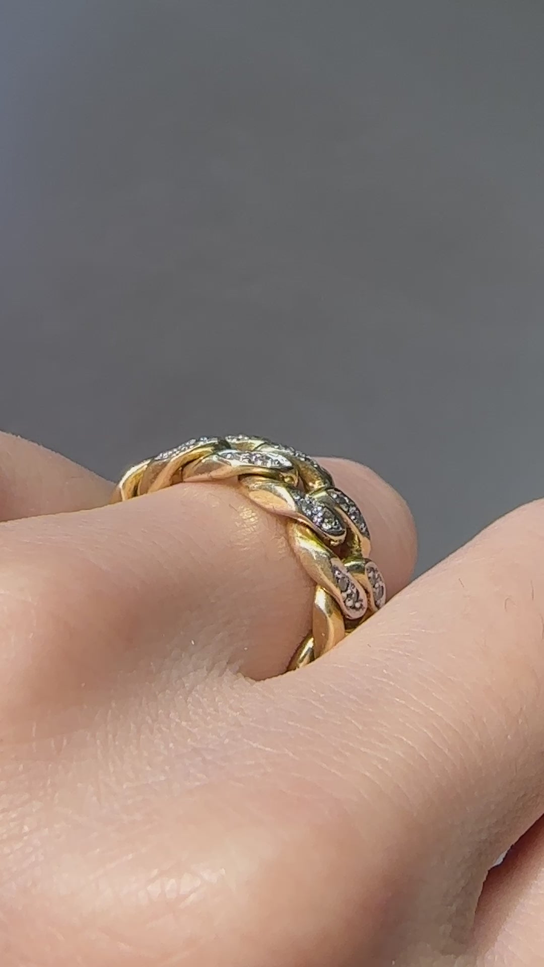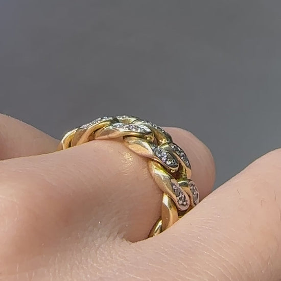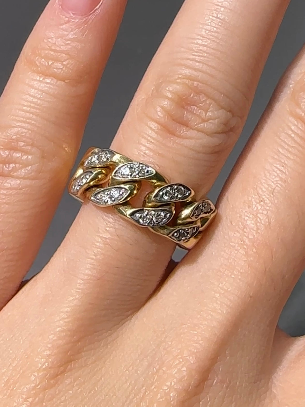 复古 18K 金 0.16 CTW 钻石链环戒指 尺寸 6.5
