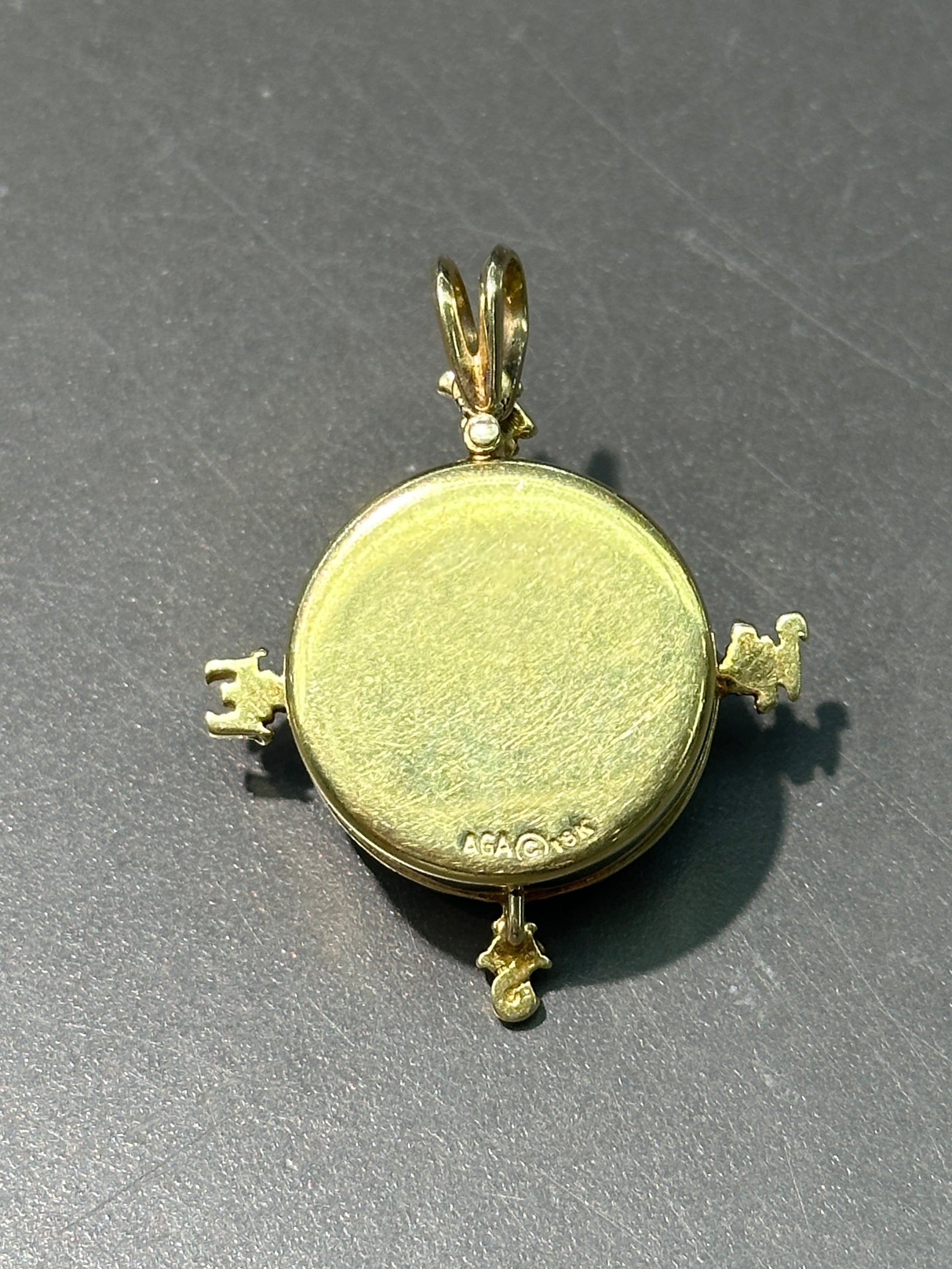 一款超酷的功能性指南针,边框采用 18K 金打造,盖子可滑动打开和关闭,上面标有字母“N、E、S、W”。