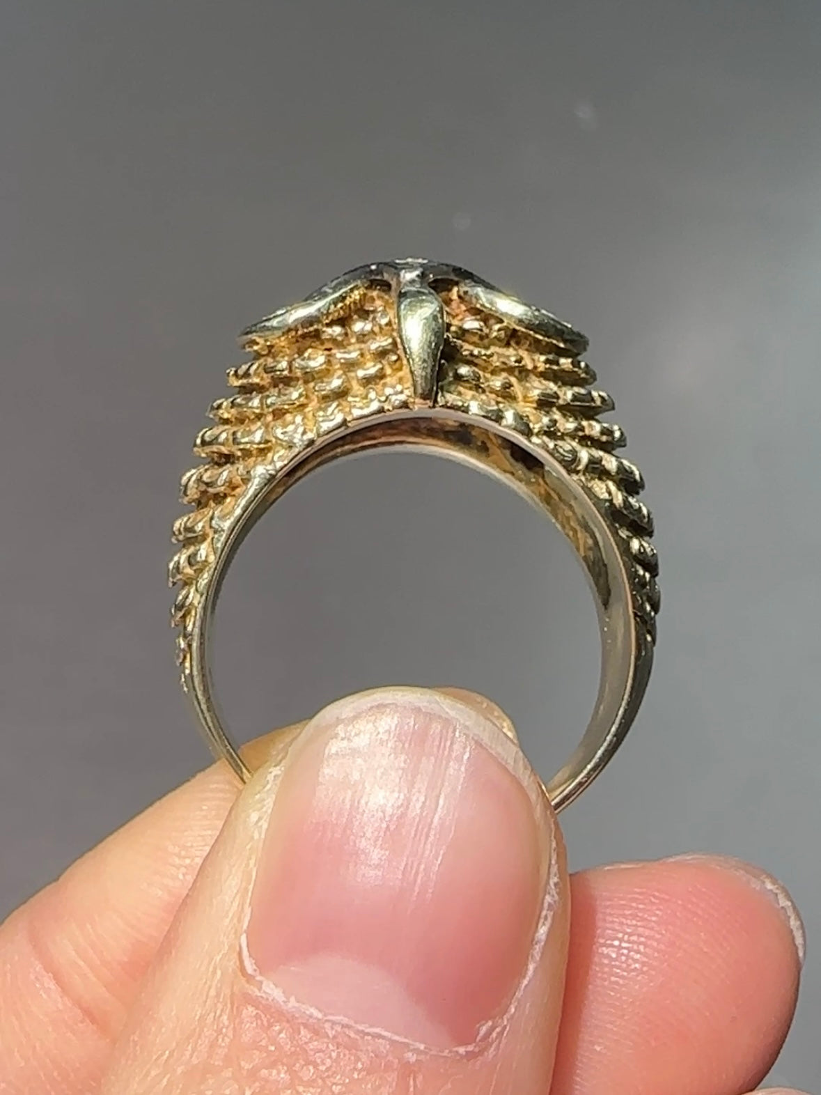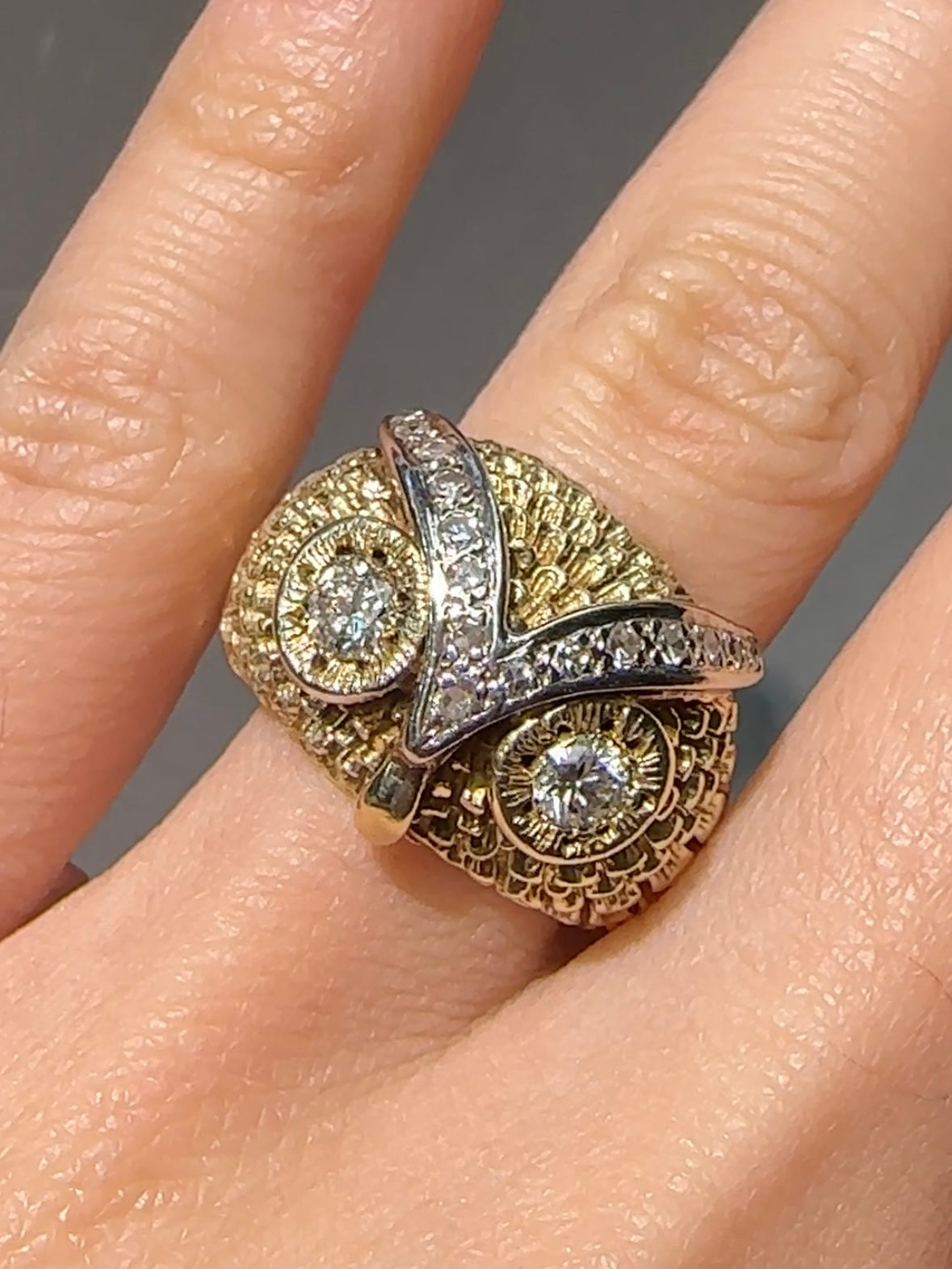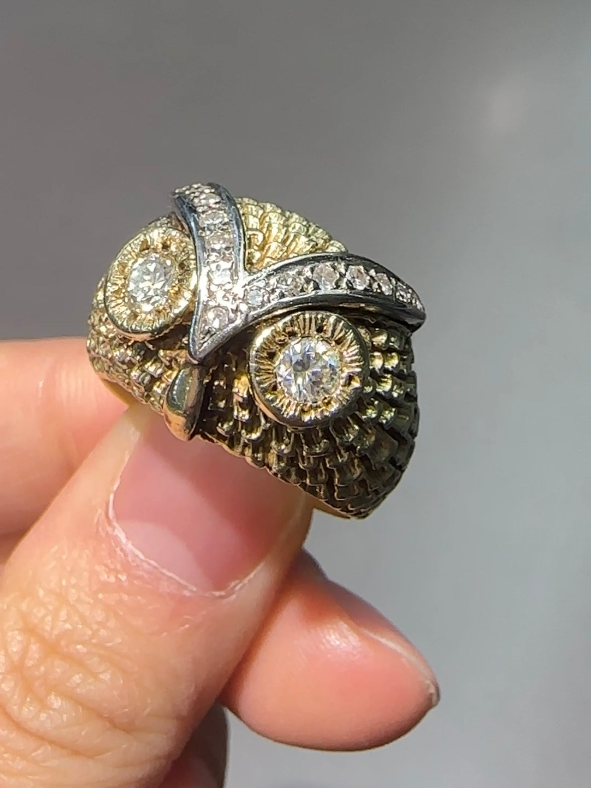 复古 14K 黄金 0.65 CTW 钻石猫头鹰戒指