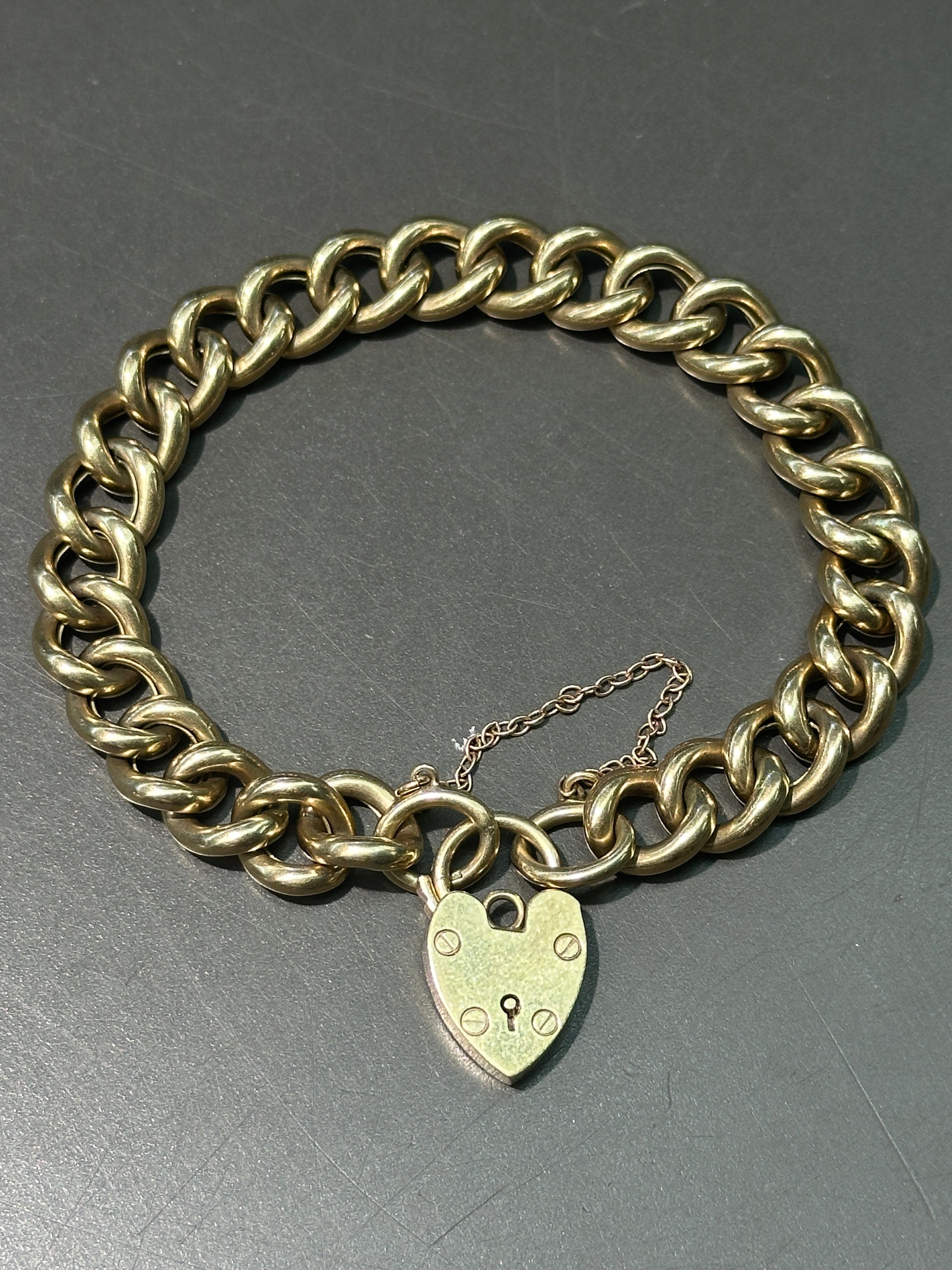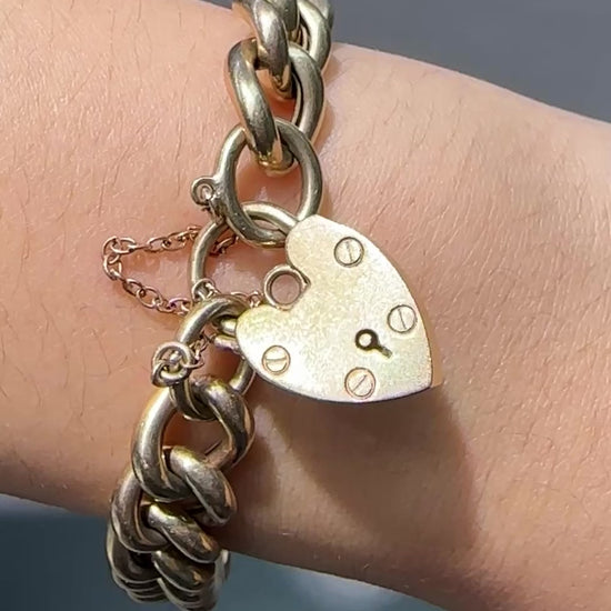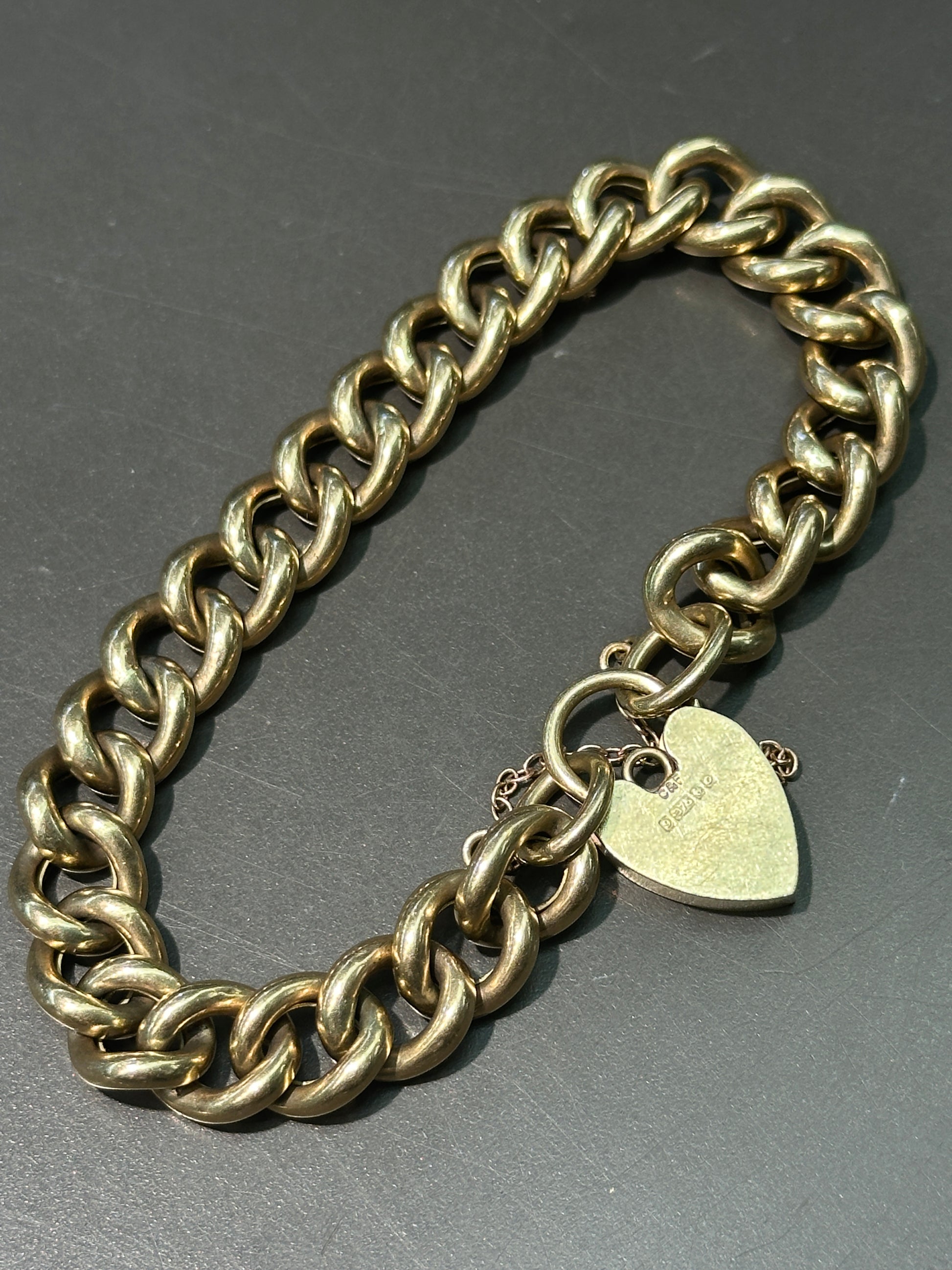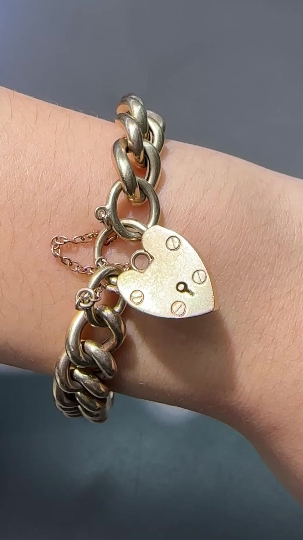 这款复古优雅的 9K 金挂锁手链配有功能齐全的心形挂锁扣,连接到半空心链环上,颜色为温暖的黄金色。单独佩戴或叠戴都很完美!